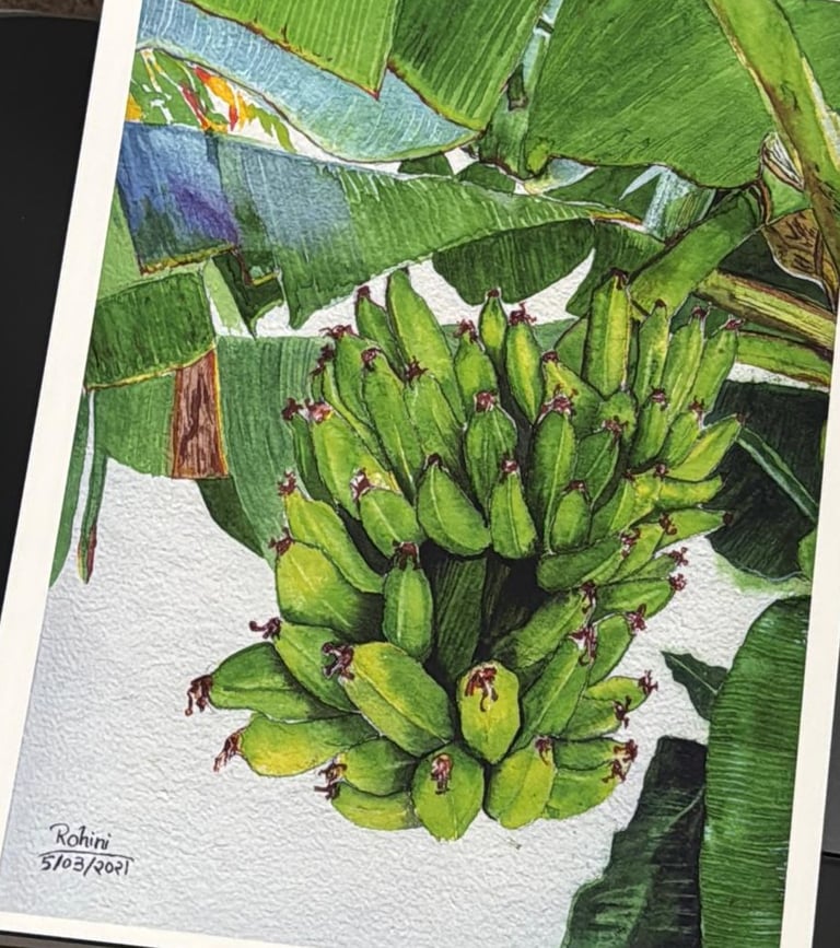 I have to be honest, I really have some minor regrets ever putting my eyes on one of Rohini's watercolors. Let me explain - once one piece catches your eye, you’ll have no choice but to take a peek at her other works, which will inevitably end with you buying more than you'd originally planned. I started out looking to buy one piece, and ended up with 3!